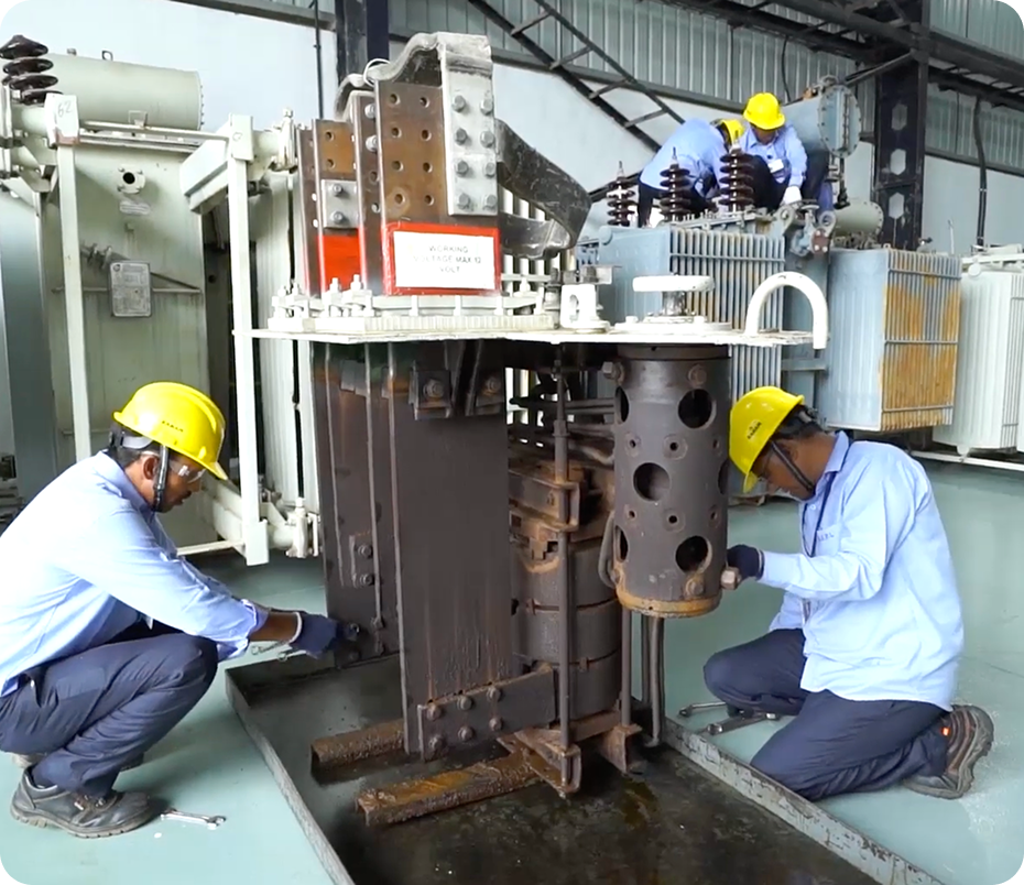 We provide on-sight servicing/overhauling of transformers which includes attending leakages, painting replacement of gaskets , replacing of GOR,MOG. Our onsite services are available on both a scheduled and emergency basis which includes all routine tests such as magnetic balance, turns ratio test, winding resistance , etc. Transformer life assessment tests such as tan-delta , SFRA , etc are also carried out by us.