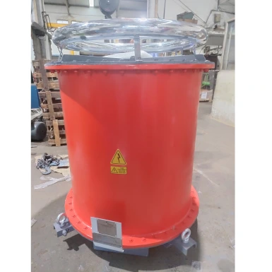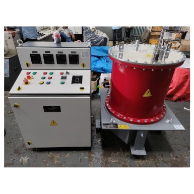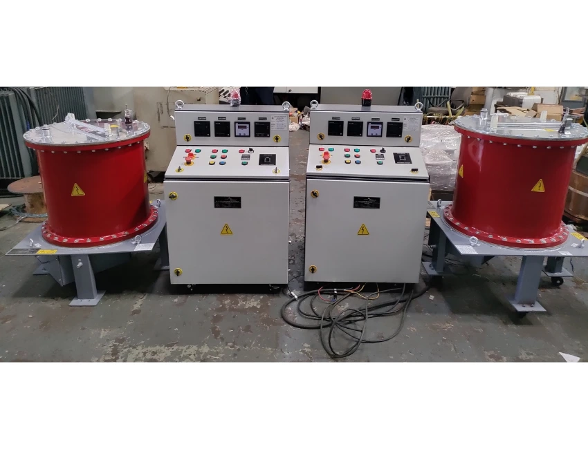 The tester operates with an input supply of 240 V or 415 V, 50Hz and provides output voltage from 100kV with step-less variable control. It includes zero-start interlocking and audio-visual indication to ensure safe operation during high voltage testing procedures.